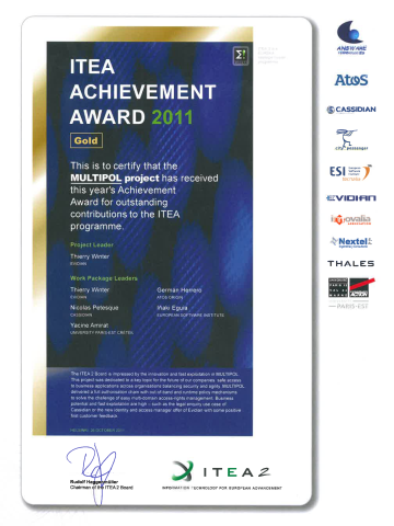 ITEA Award Gold Medal on best project 2011. "Multipol project"